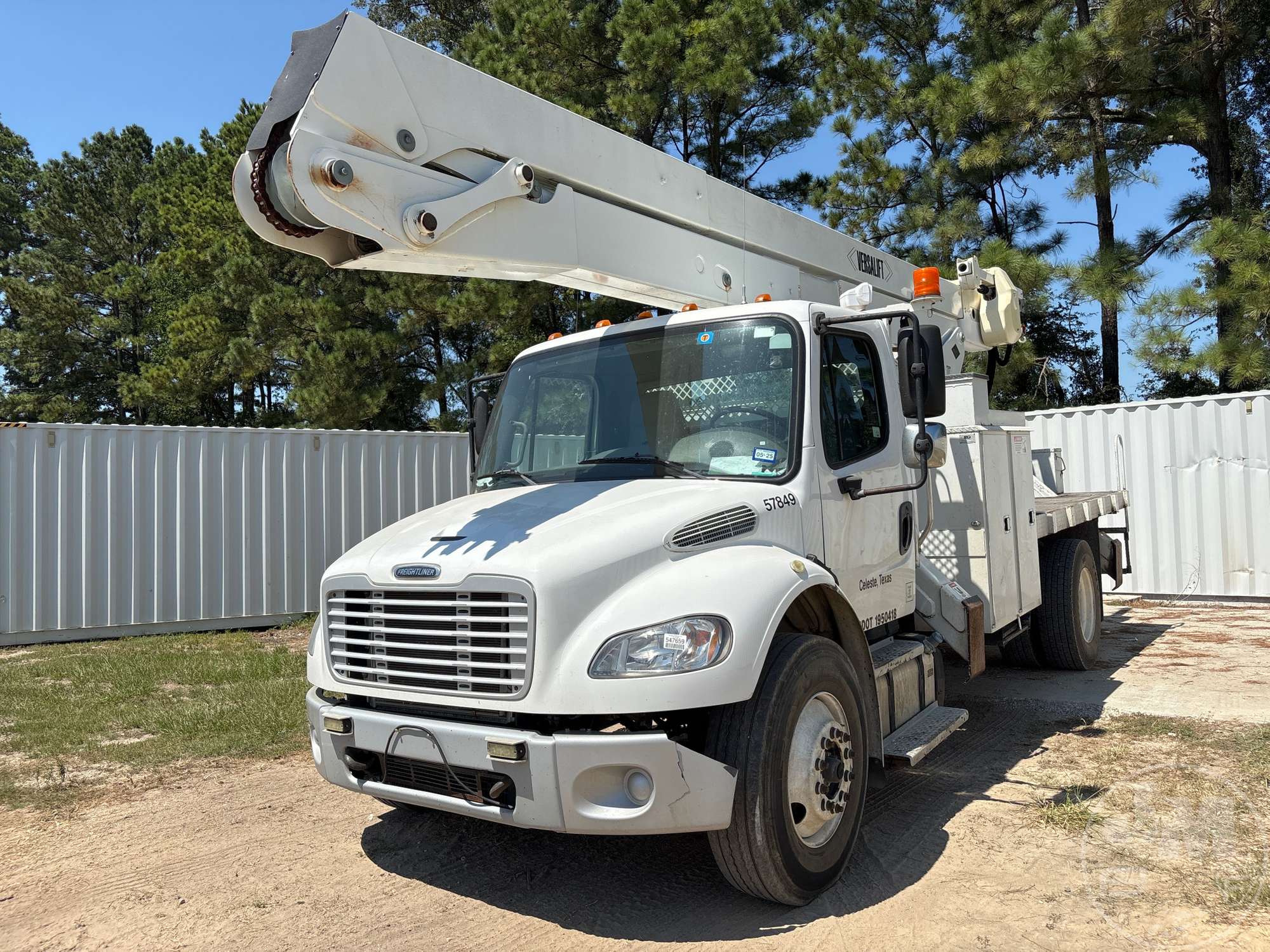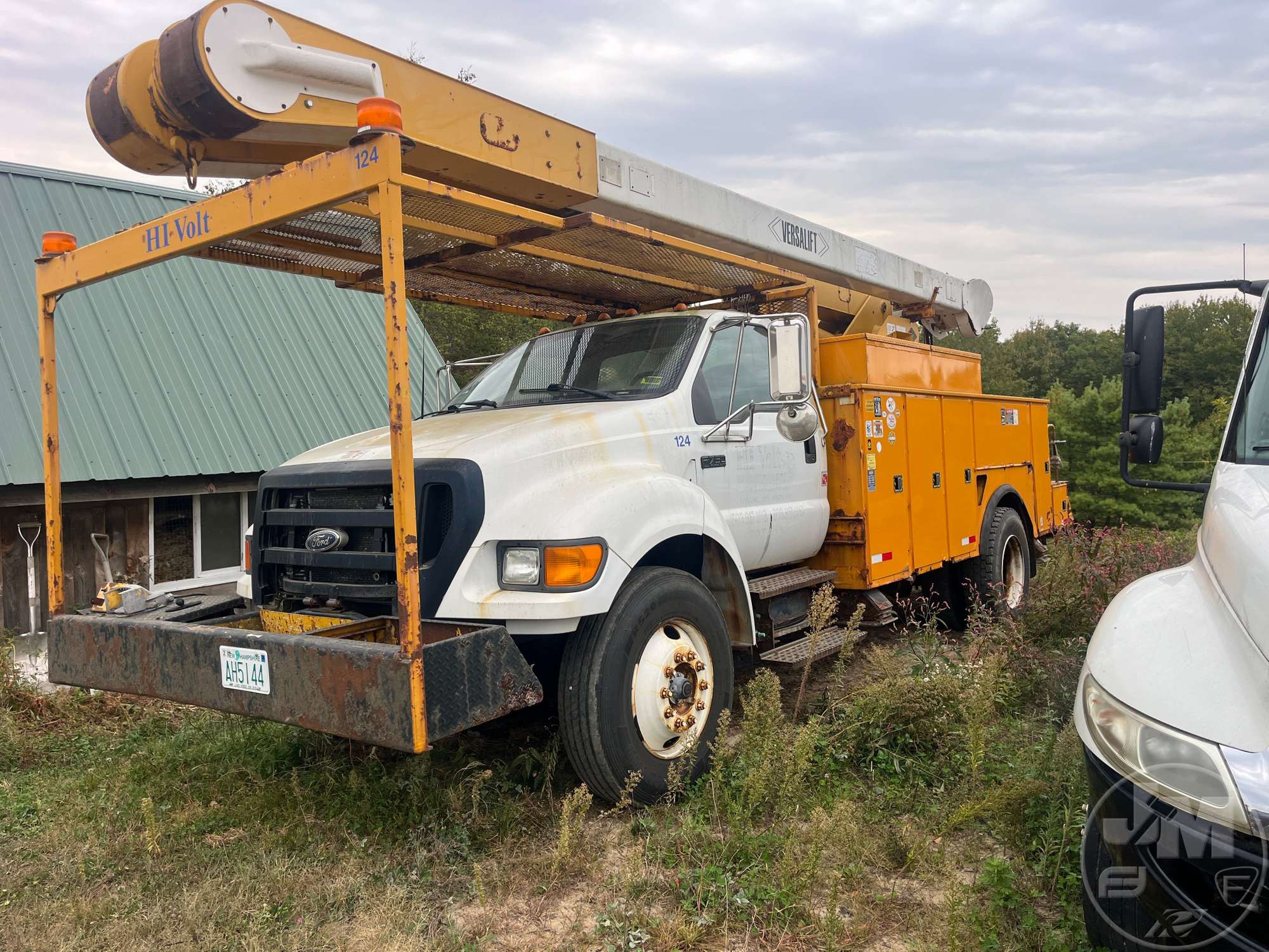 BUCKET TRUCK VERSALIFT, CUMMINS ISB 6 CYLINDER DIESEL, ALLISON, AUTOMATIC, SPRING SUSPENSION, 190 IN. WB, FLATBED BODY, MID MOUNT BOOM, TWO MAN BUCKET, 4 HYDRAULIC OUTRIGGERS, HOUR METER READS: ...