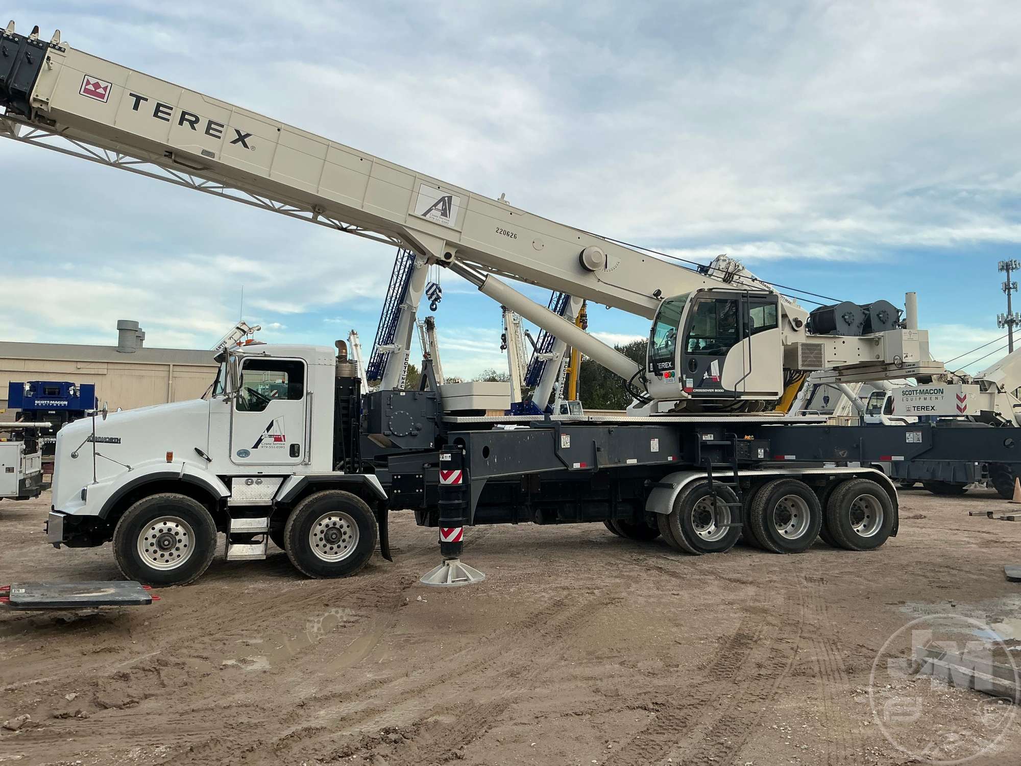 TRUCK CRANE, 2007 TEREX T-775, 75 TON TRUCK CRANE EQUIPPED WITH 126' OF MAIN BOOM, 57' TELE JIB, BLOCK, BALL, ANTI-TWO BLOCK, AUX WINCH, JIB, AUX SHEAVE, AC, HEAT, DETROIT 60 SERIES ENGINE, MILES 147,...