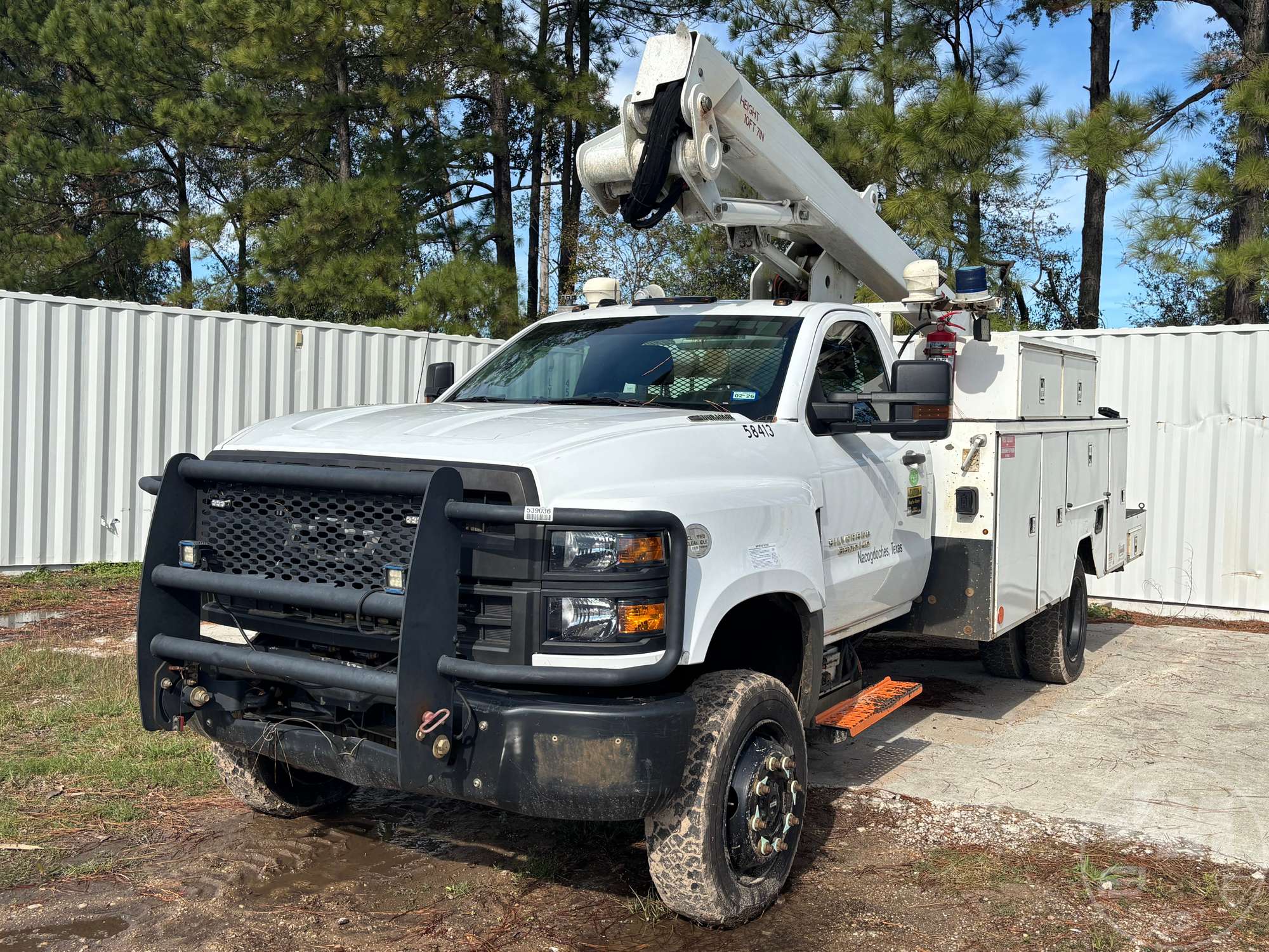 BUCKET TRUCK VERSALIFT, MID MOUNT BOOM, CUMMINS, 6.7, HP 300, SINGLE AXLE, EATON FULLER, 6 SPEED, SPRING SUSPENSION, WORK HEIGHT 65, CHIPPER DUMP BODY, SINGLE MAN BUCKET, 2 HYDRAULIC OUTRIGGERS...