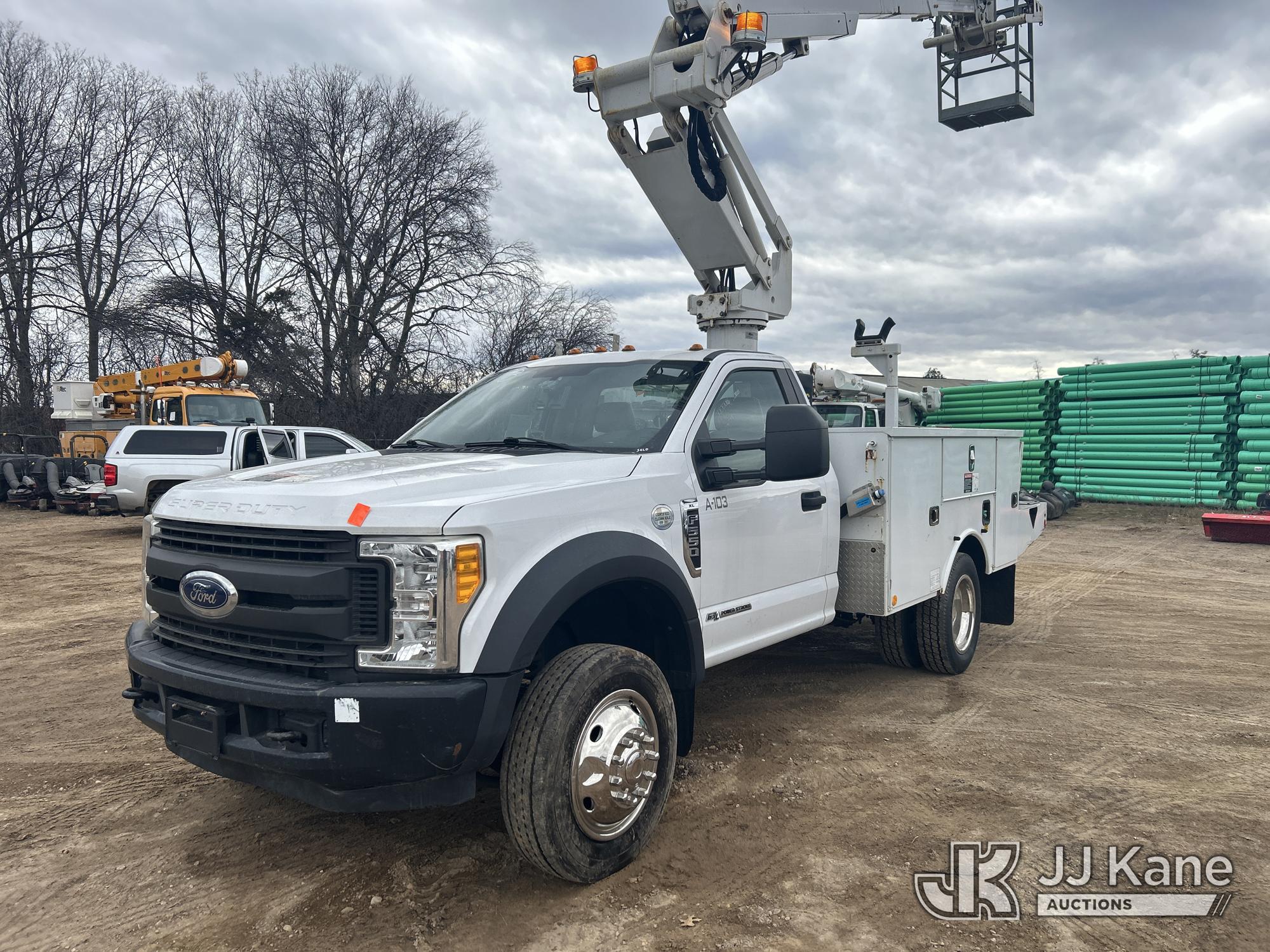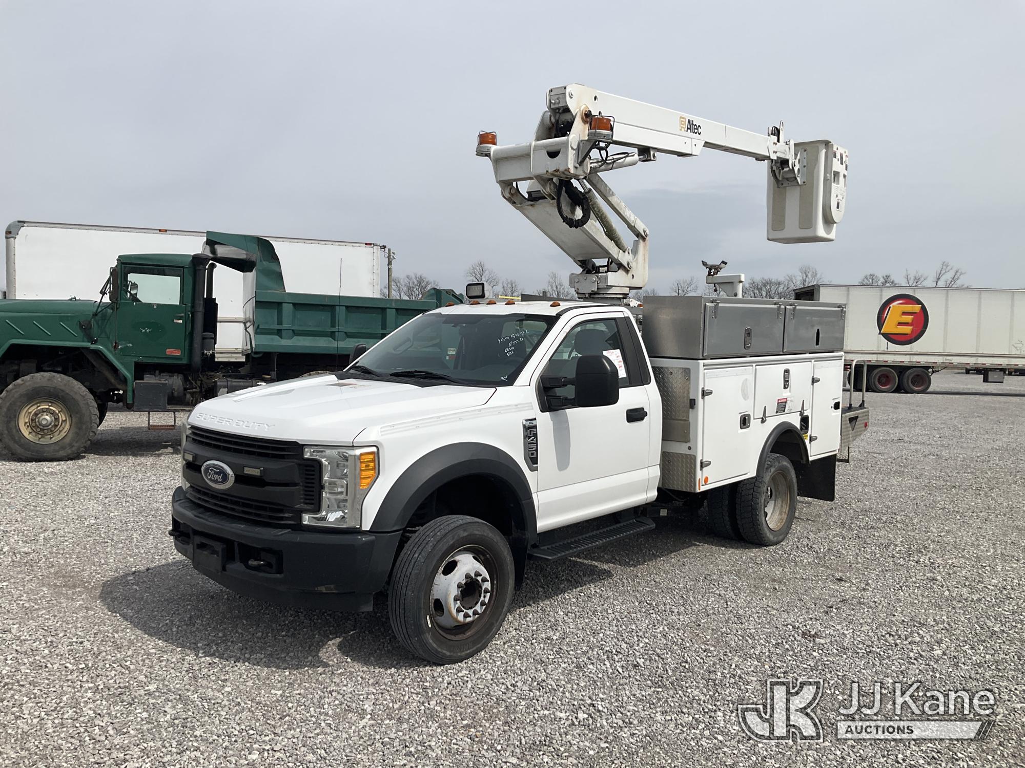 Altec AA55, 61 ft, Material Handling Bucket Truck s/n 0217FH4100, with two-man bucket & 4 hyd outriggers, rear mounted on 2017 International 4300 Utility Truck, 6.7L Diesel, 4X2, Auto, A/C, (63,284 mi...