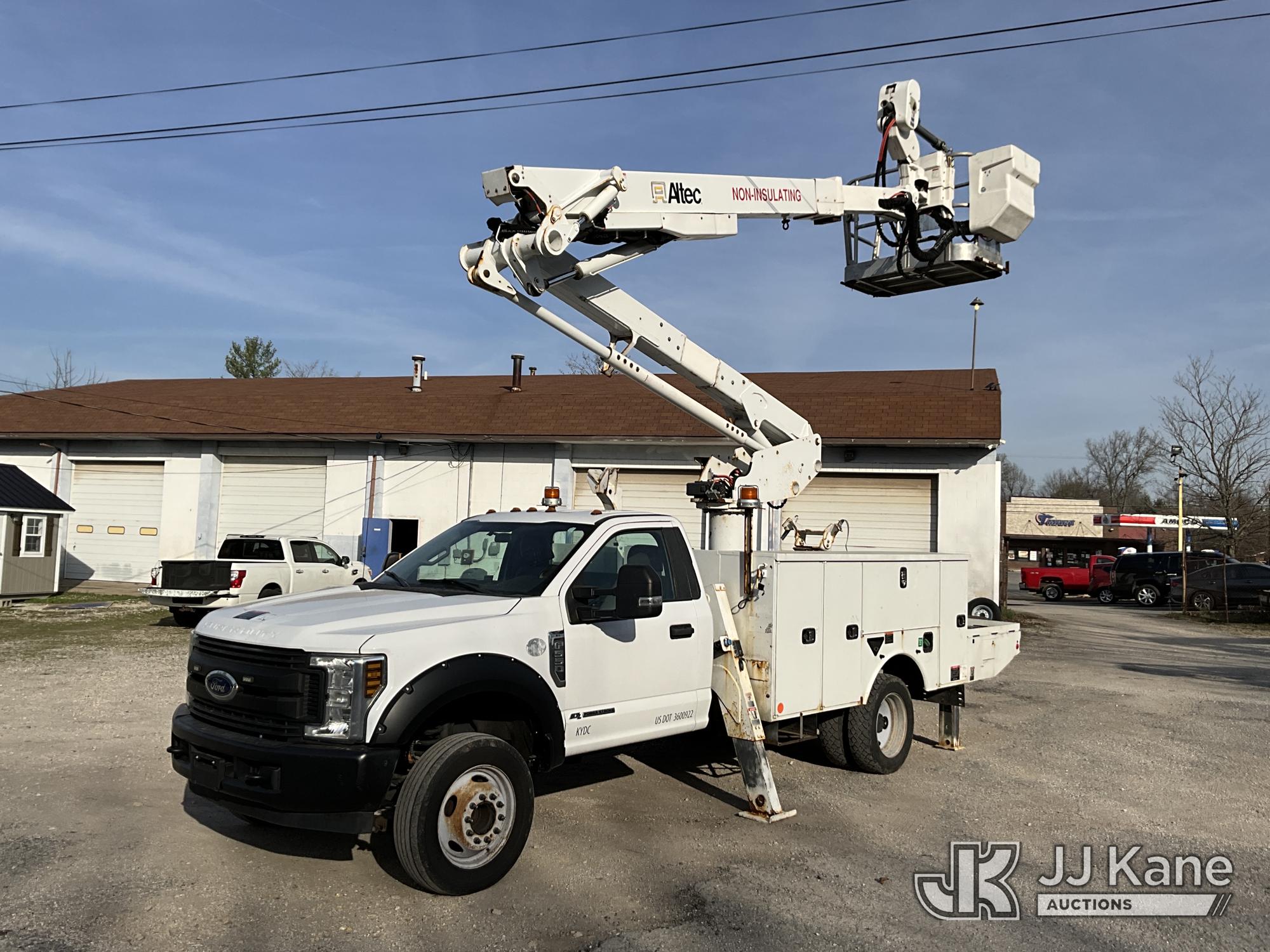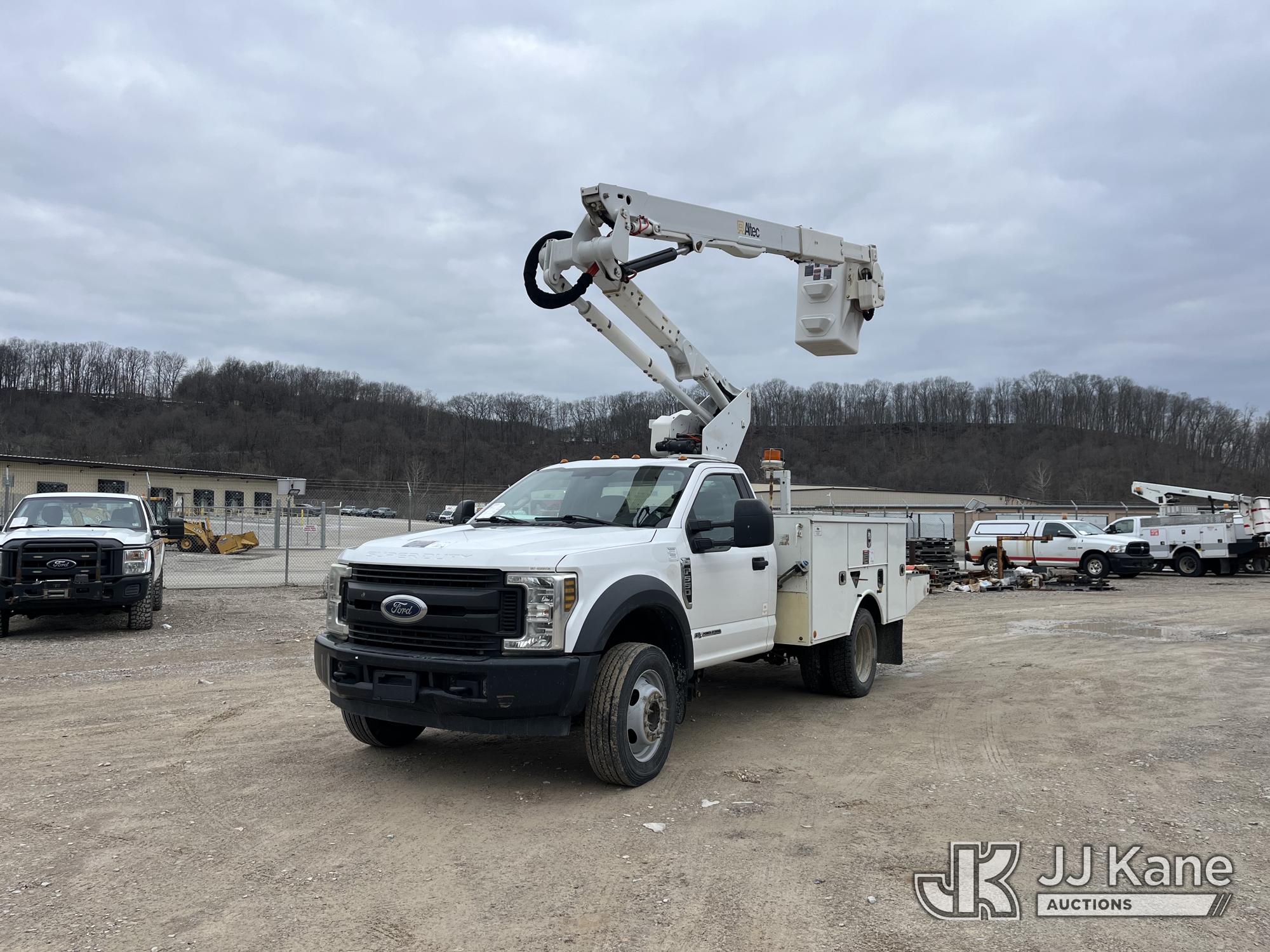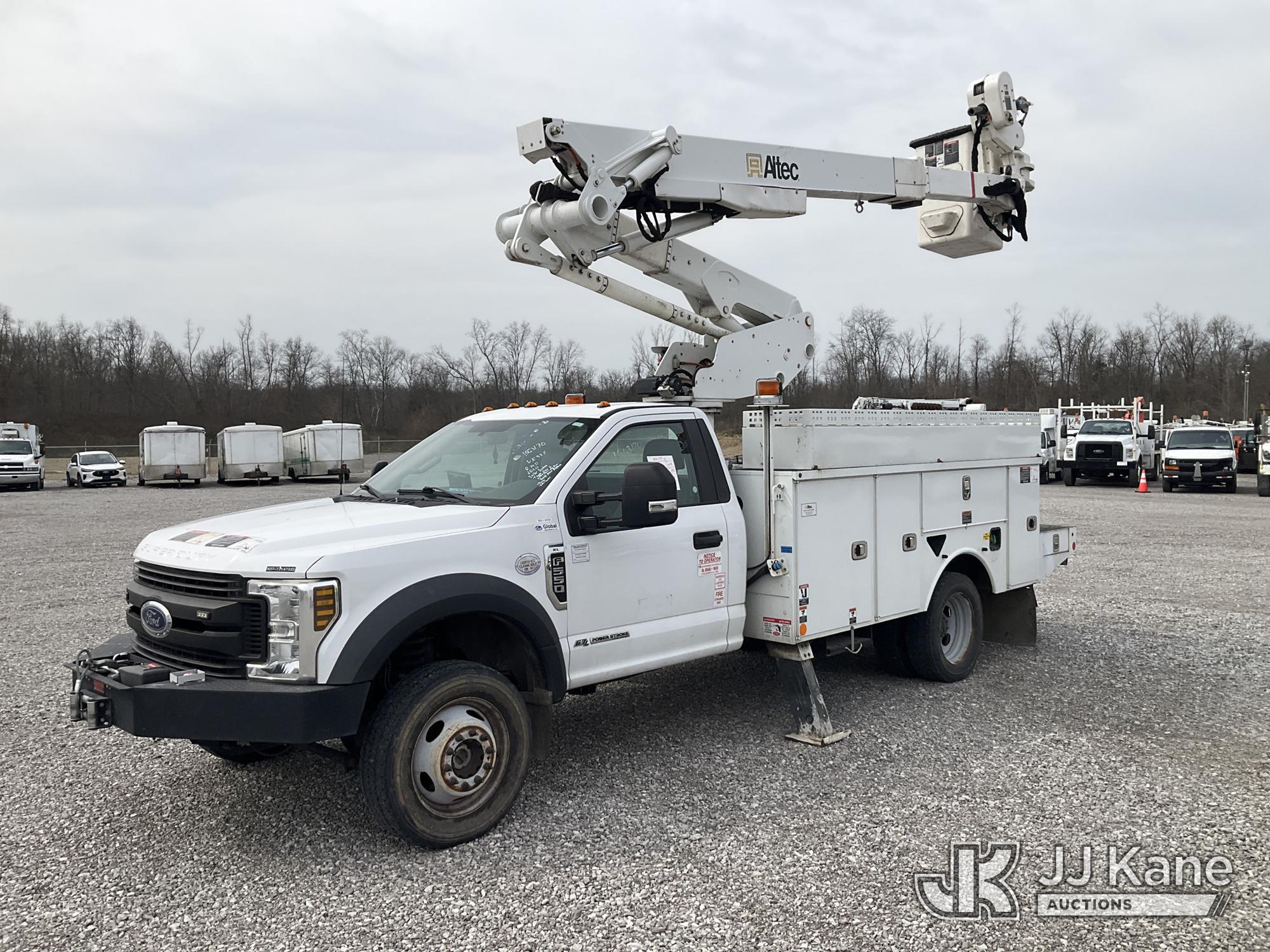 Altec AA55-MH, 61 ft, Material Handling Bucket Truck s/n 1018HL0336, with two-man bucket, rear mounted on 2019 International 4300 Utility Truck, Cummins ISB 6.7L diesel, Auto, A/C, (75,783 miles) (Run...