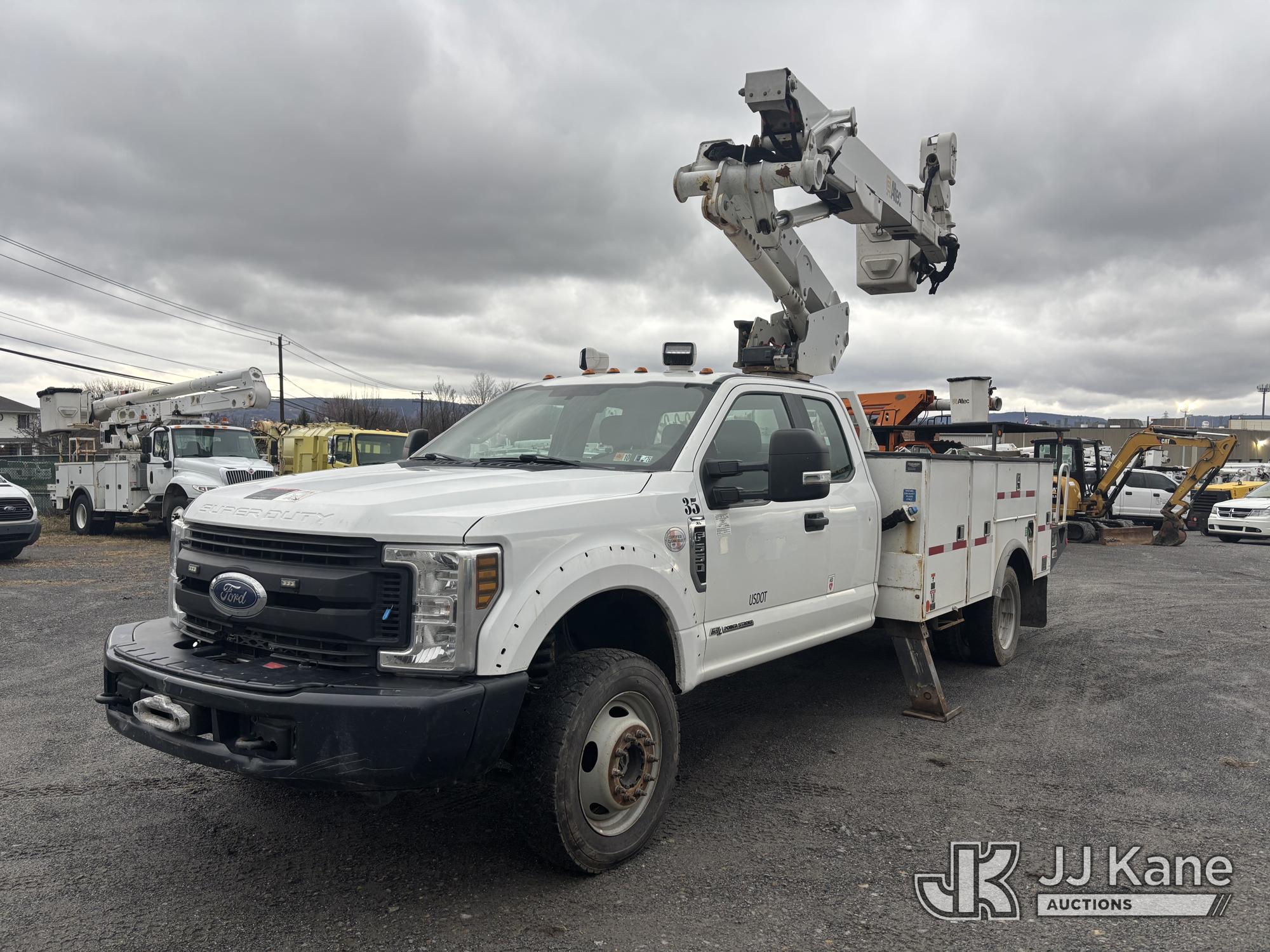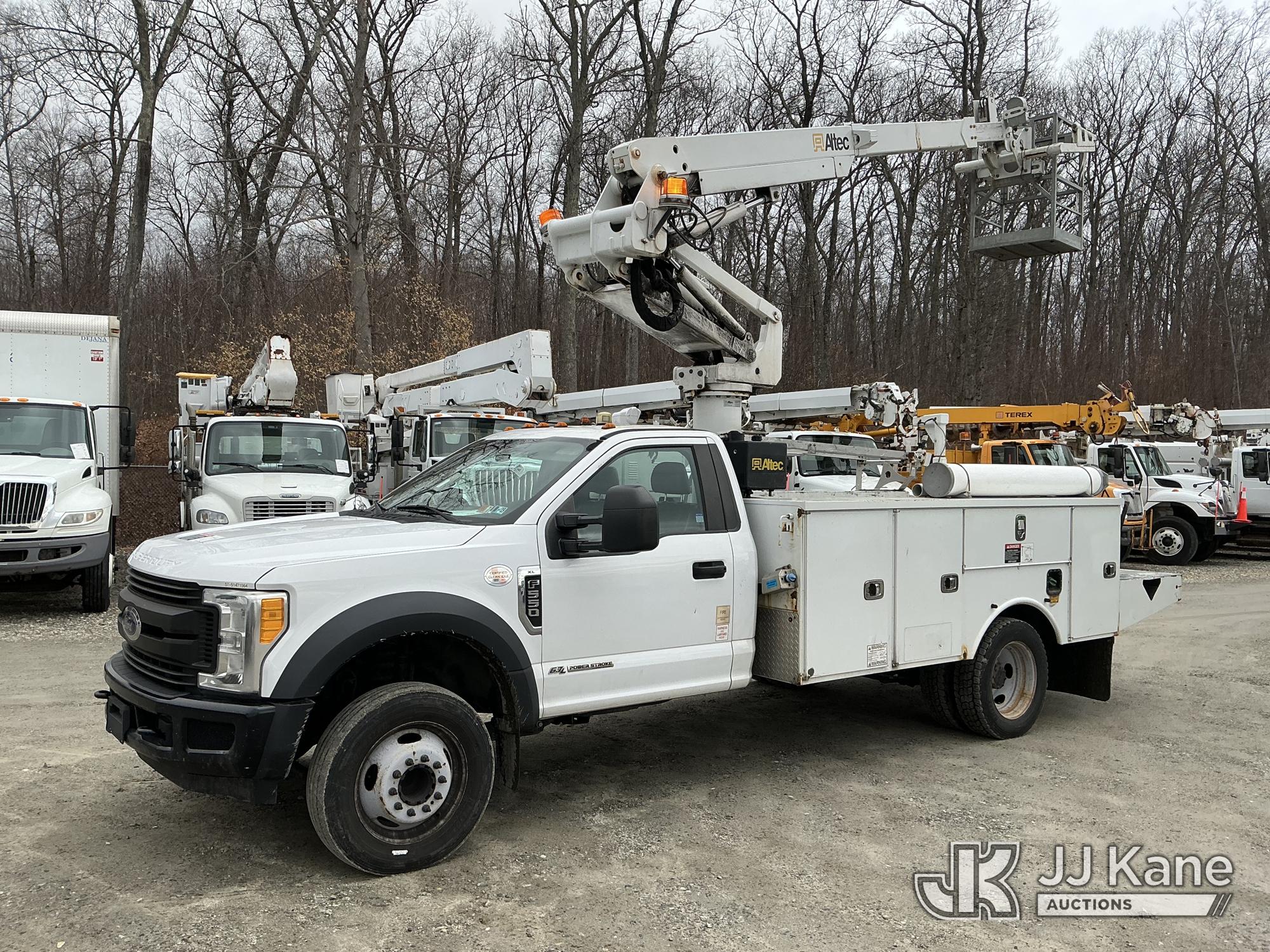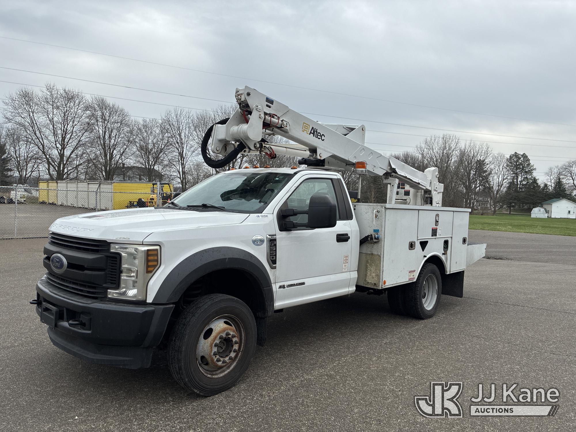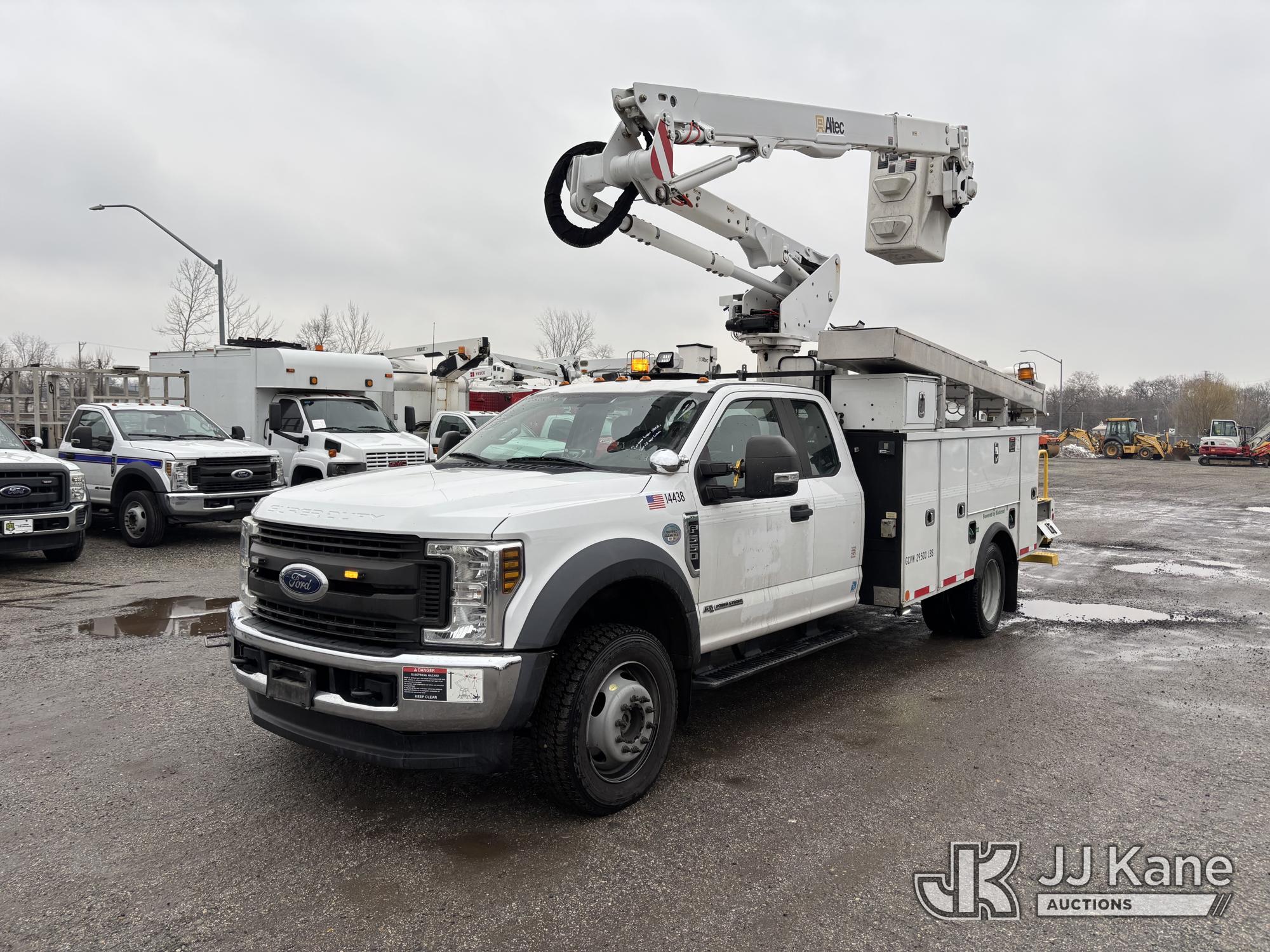Altec AA55-MH, 61 ft, Material Handling Bucket Truck s/n 1018HL0336, with two-man bucket, rear mounted on 2019 International 4300 Utility Truck, Cummins ISB 6.7L diesel, Auto, A/C, (75,783 miles) (Run...