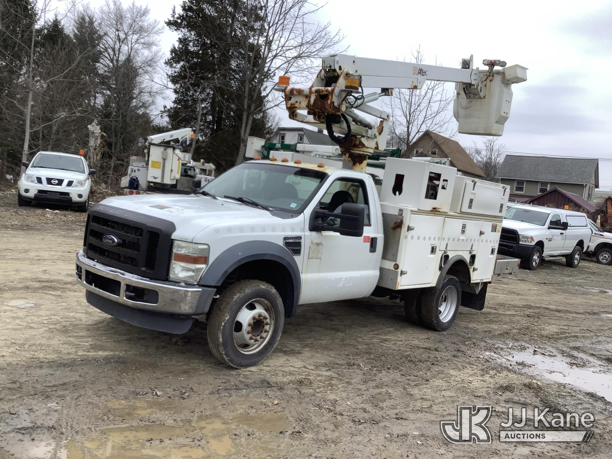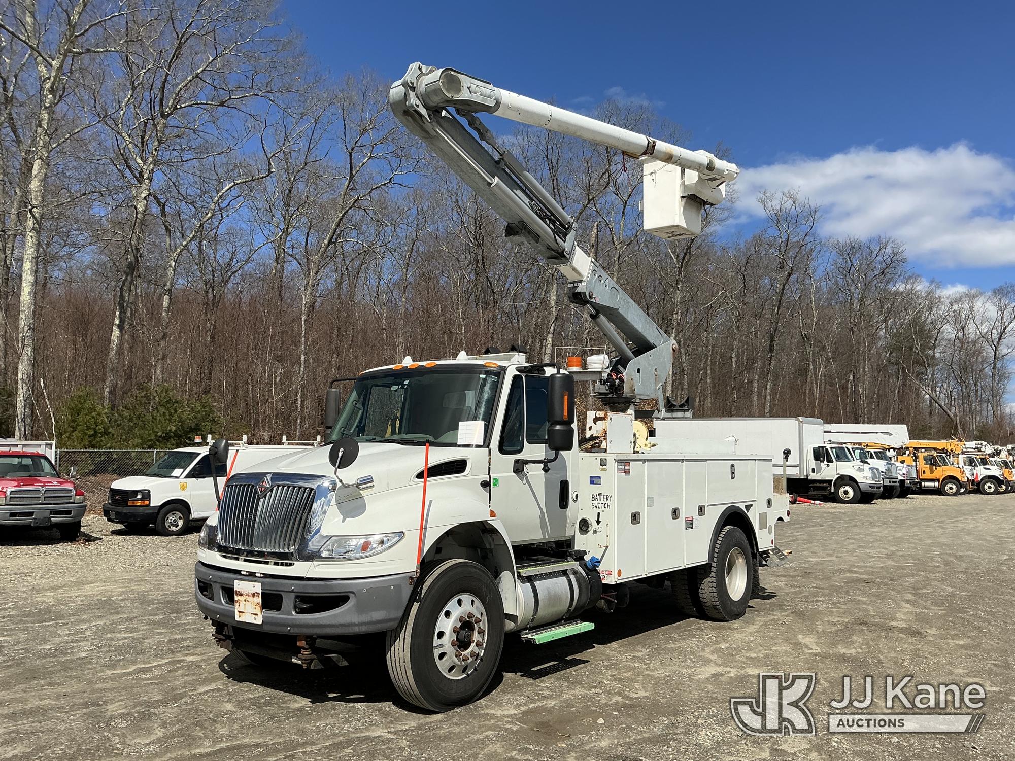 HiRanger HR50-M, 55 ft, Material Handling Bucket Truck s/n 2080235331, with single-man bucket & 4 hyd outriggers, rear mounted on 2008 International 4400 Utility Truck, MaxxForce 7.6L diesel, Auto, A/...