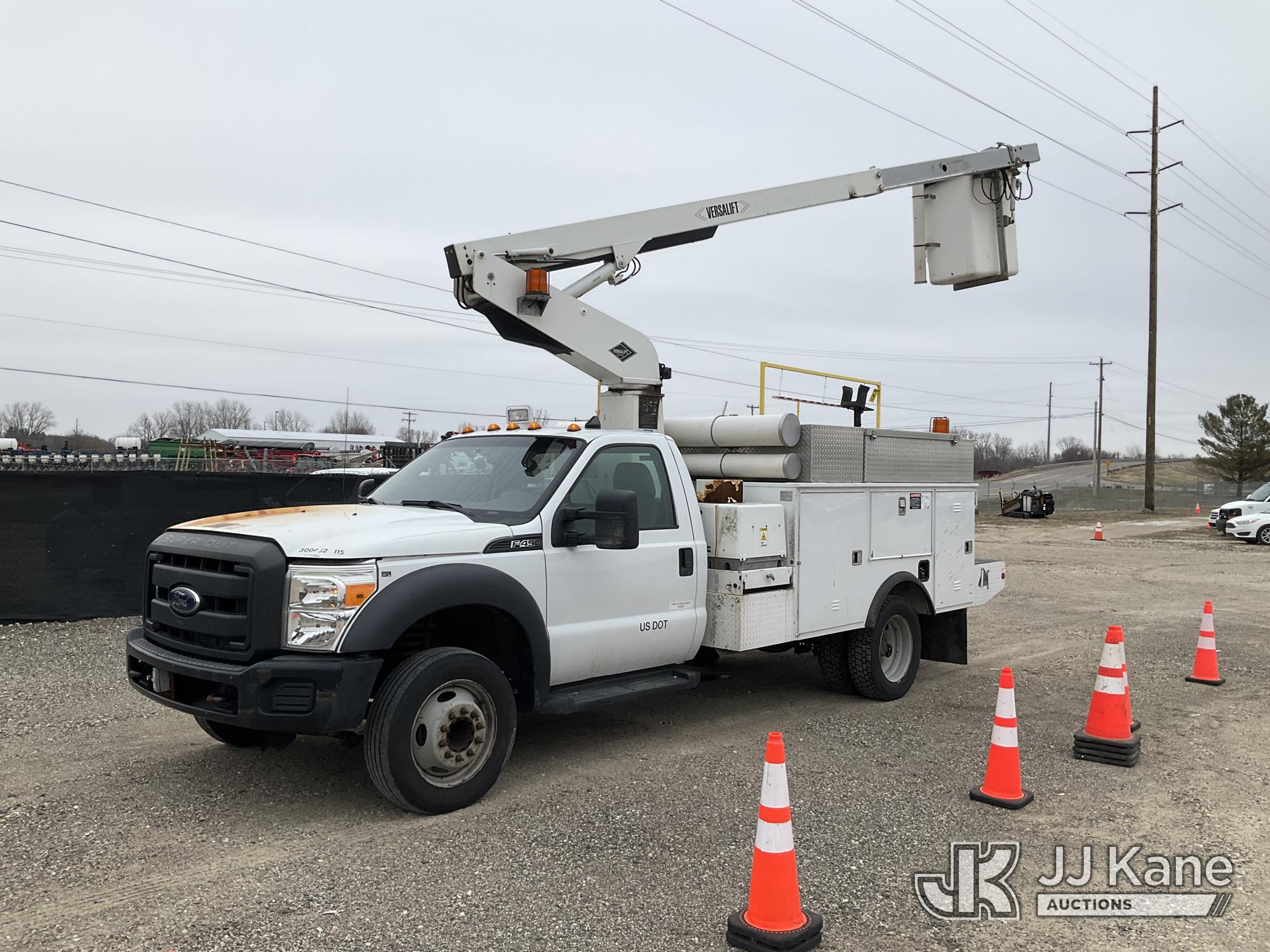 Versalift V0350MHI, 55 ft, Material Handling Bucket Truck s/n MG140010, with single-man bucket, center mounted on 2015 International 4400 Utility Truck, MaxxForce 7.6L diesel, Auto, A/C, (67,901 miles...