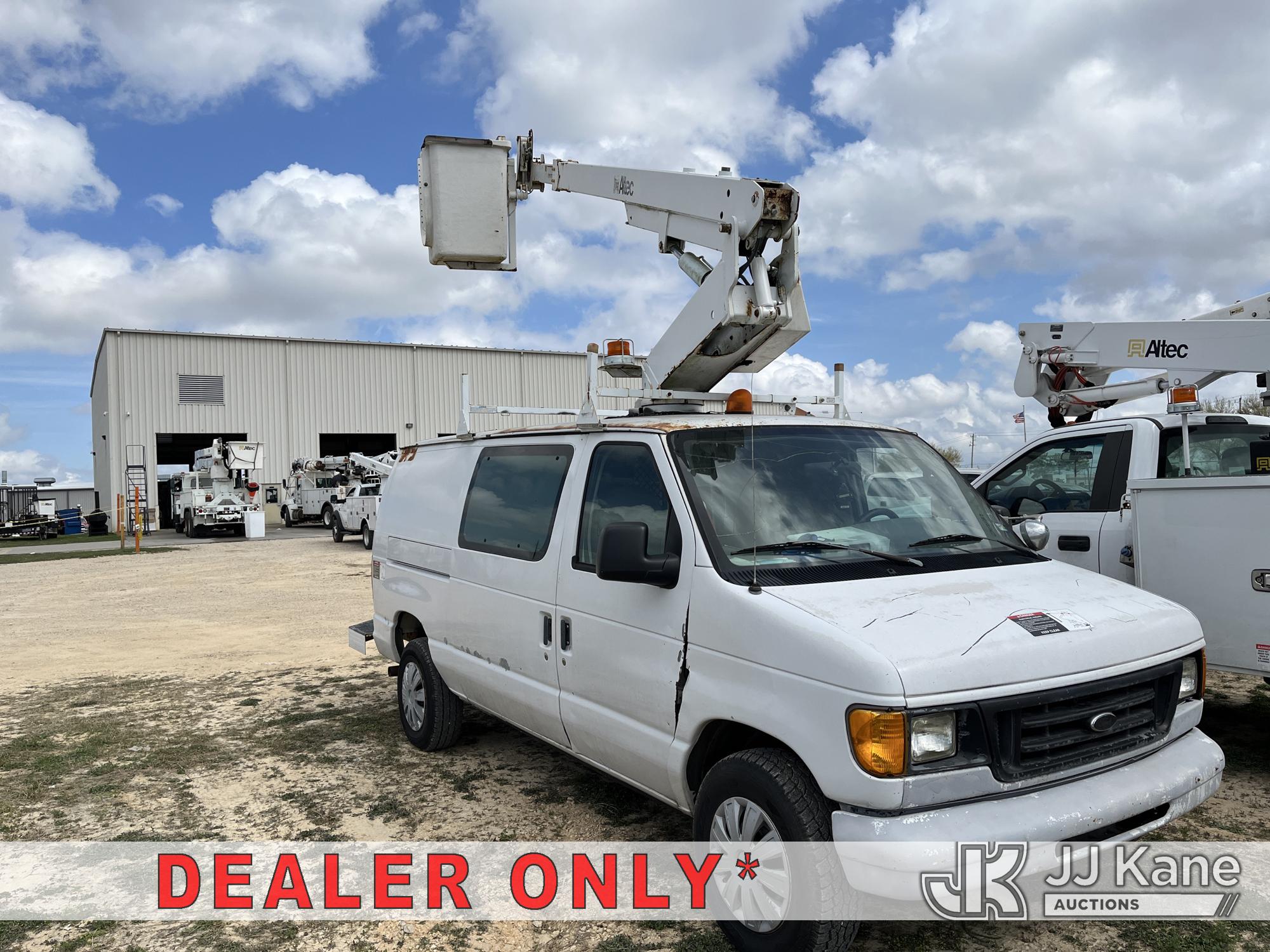 Altec AA755L, 60 ft, Material Handling Bucket Truck s/n 0405BZ3534, with two-man bucket & 4 hyd outriggers, rear mounted on 2006 International 4300 Utility Truck, DT466 4X2, diesel, Auto, A/C, (Exempt...