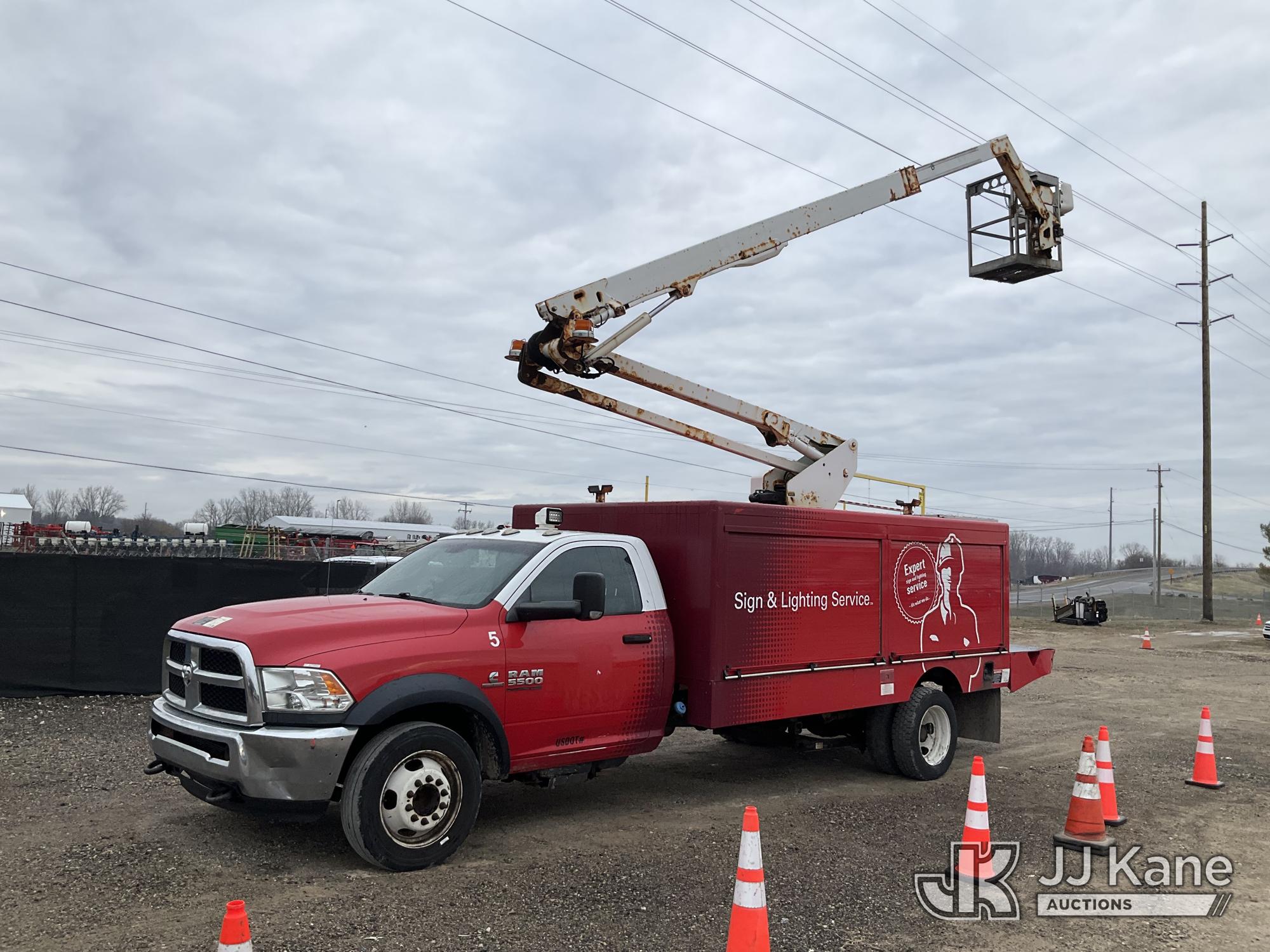 Versalift VO40MHI01, 45 ft, Articulating Material Handling Bucket Truck s/n ME160018, with single-man bucket & 2 hyd outriggers, mounted behind cab on 2016 RAM 5500 Regular Cab 4WD DRW Service Truck, ...