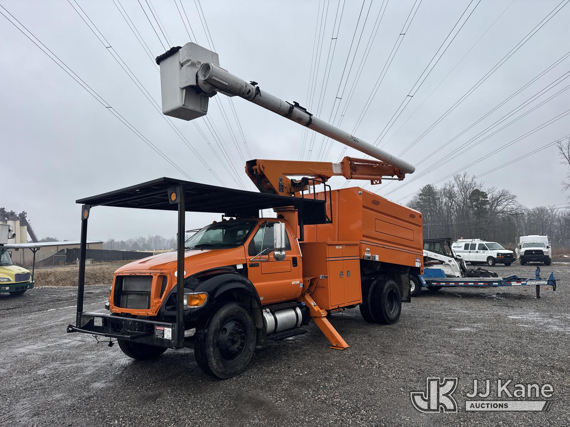 Altec LRV-57RM, 62 ft, Over-Center Bucket Truck s/n 0408CV7494, with single-man bucket, rear mounted on 2007 International 4300 Flatbed/Utility Truck, DT466 7.6L diesel, 4X2, manual, A/C, (119,287 mil...