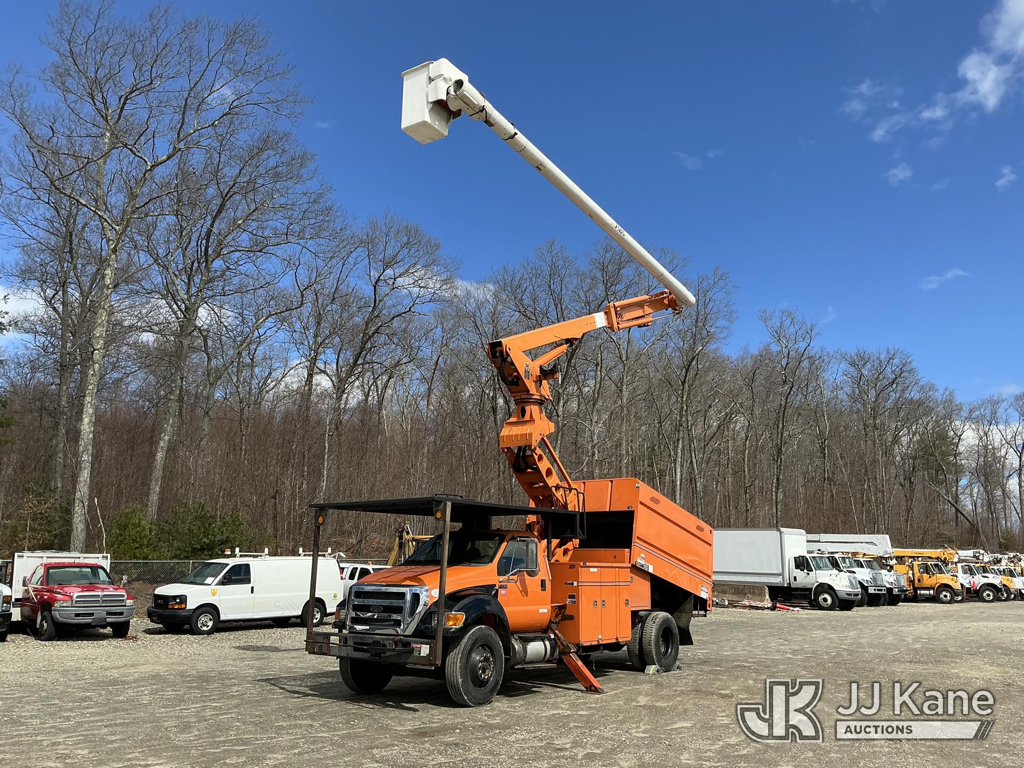 Terex/HiRanger XT60, 65 ft, Over-Center Bucket Truck s/n 2080436623, with single man bucket & two hydraulic outriggers, mounted behind cab on 2009 International 4300 Chipper Dump Truck, 7.6L diesel, 4...