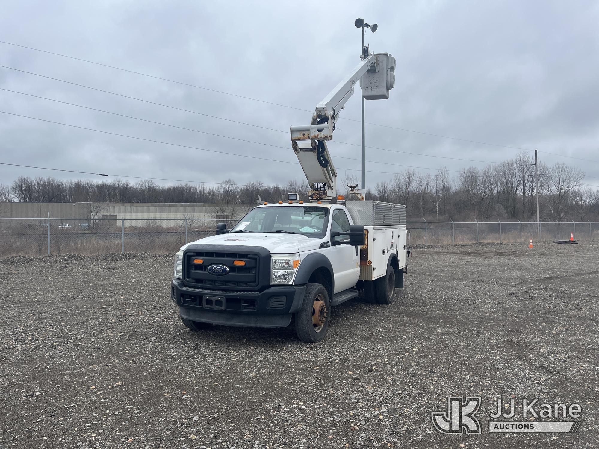 Altec AN55E-OC, 60 ft, Material Handling Bucket Truck s/n 0211ES0164, with single-man bucket & 4 hyd outriggers, rear mounted on 2011 International 4300 Utility Truck, MaxxForce 7.6L 4X2, diesel, Auto...