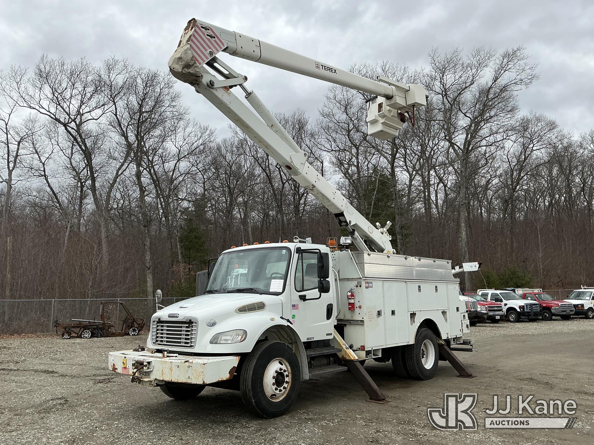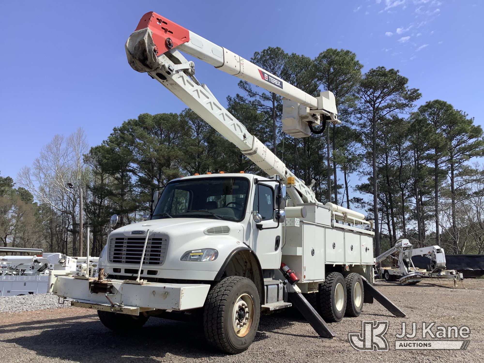 Terex/HiRanger 60/70, 75 ft, Over-Center Elevator Bucket Truck s/n 2140853144, with single-man bucket & 4 hyd outriggers, rear mounted on 2015 Freightliner M2 106 4x4 Flatbed Truck, 6.7L L6 Diesel 6-s...