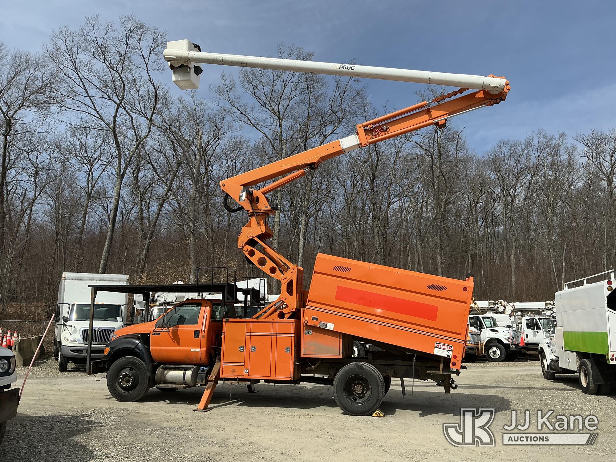 Aerial Lift AL-60-50-5-1L4H, 60 ft, Over-Center Bucket Truck s/n 3688-2-02, with single-man bucket & 2 hyd outriggers, mounted on 2001 International 4700 Chipper Dump Truck, 7.6L L6 DIESEL 4X2, 6-spd ...